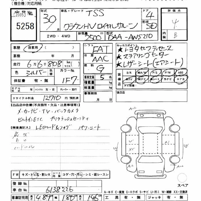 TOYOTA CROWN 2018 г., лот № 5258