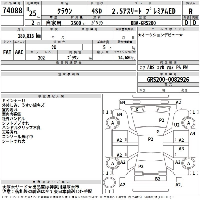 TOYOTA CROWN 2013 г., лот № 74088