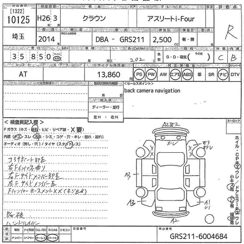 TOYOTA CROWN 2014 г., лот № 10125