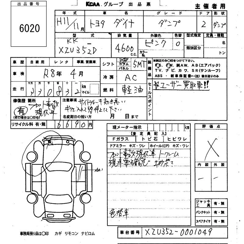 TOYOTA DYNA TRUCK 1999 г., лот № 6020