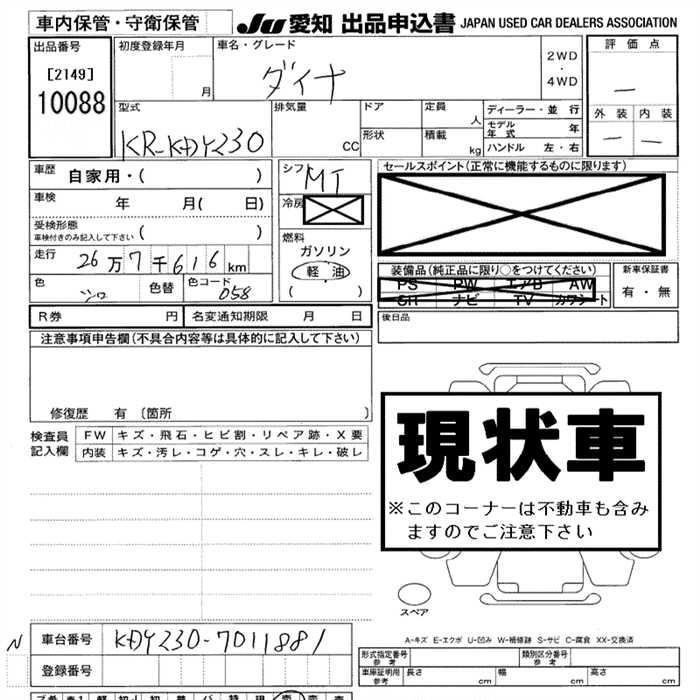 Статус выставлен на аукцион Лот 10088 Аукцион JU Aichi Дата аукциона 12.03.2026