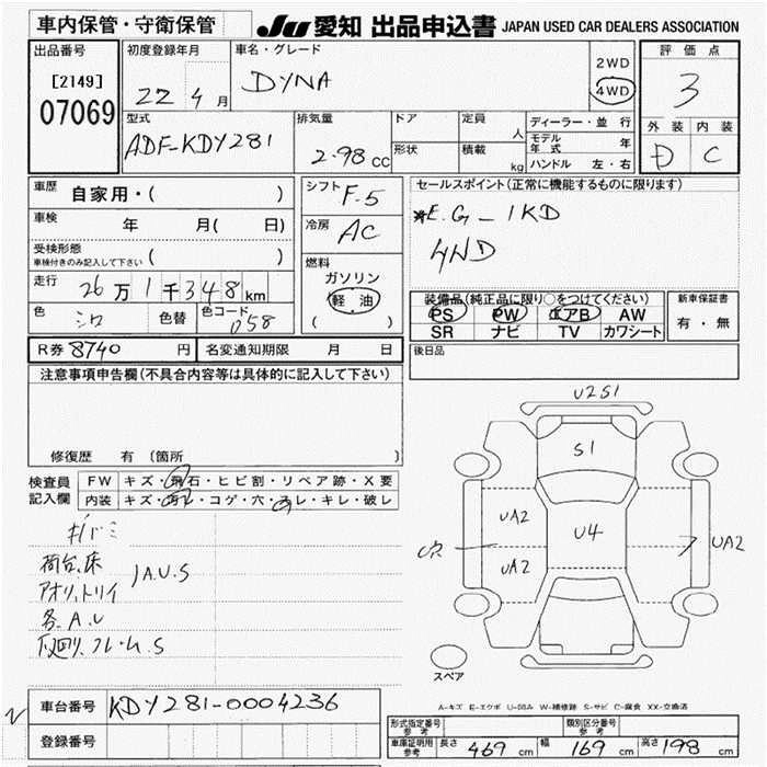 Статус выставлен на аукцион Лот 7069 Аукцион JU Aichi Дата аукциона 12.03.2026