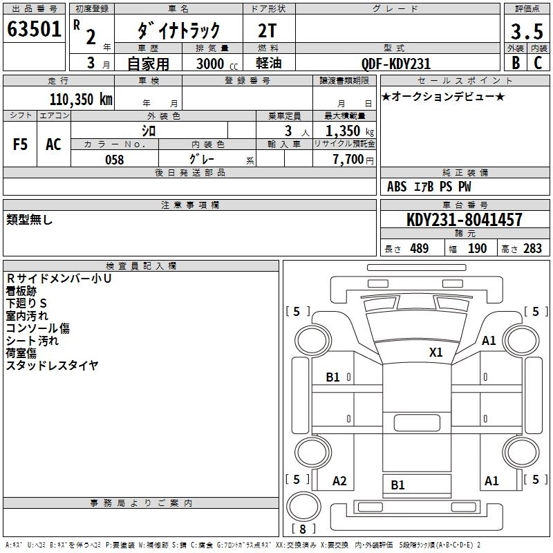Статус выставлен на аукцион Лот 63501 Аукцион TAA Chubu Дата аукциона 19.03.2026