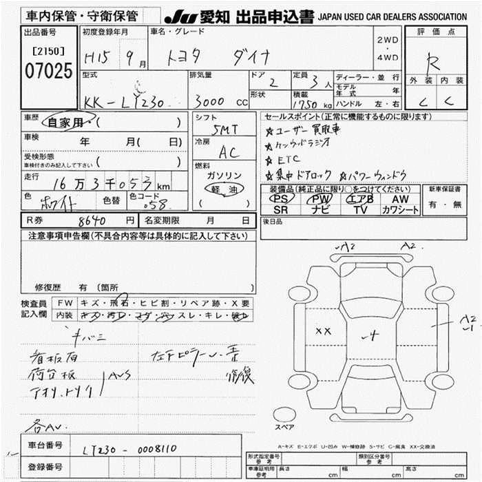 Статус выставлен на аукцион Лот 7025 Аукцион JU Aichi Дата аукциона 19.03.2026