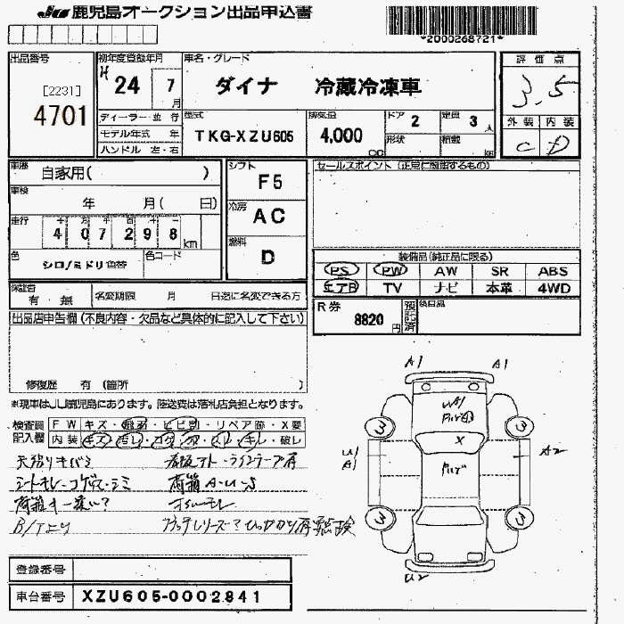 Статус не продан Лот 4701 Аукцион JU Fukuoka Дата аукциона 23.01.2026