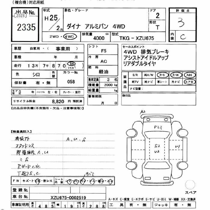 Год выпуска2013 Пробег 137 000 км КузовXZU675 Комплектация4WD ALUMINUM VAN