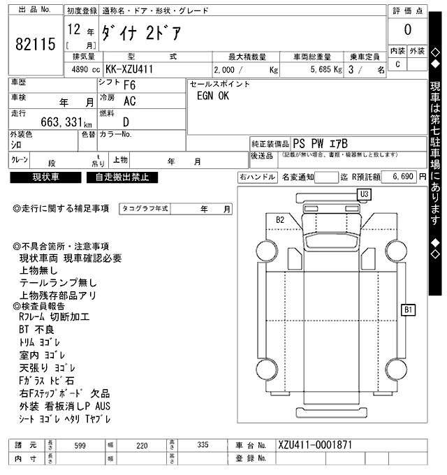 Стартовая цена авто на аукционе 0 ¥