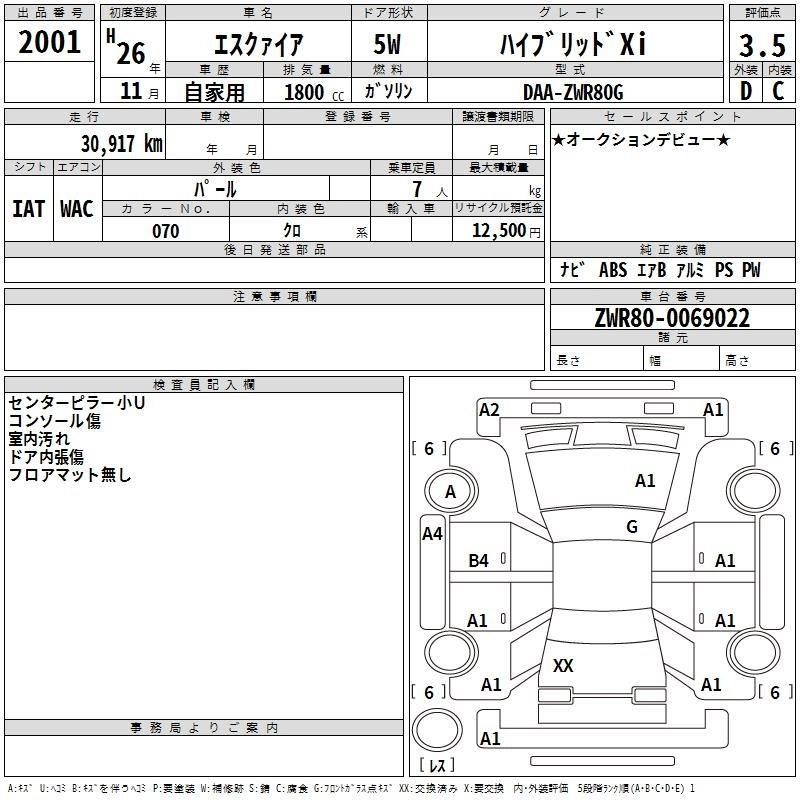 TOYOTA ESQUIRE 2014 г., лот № 2001