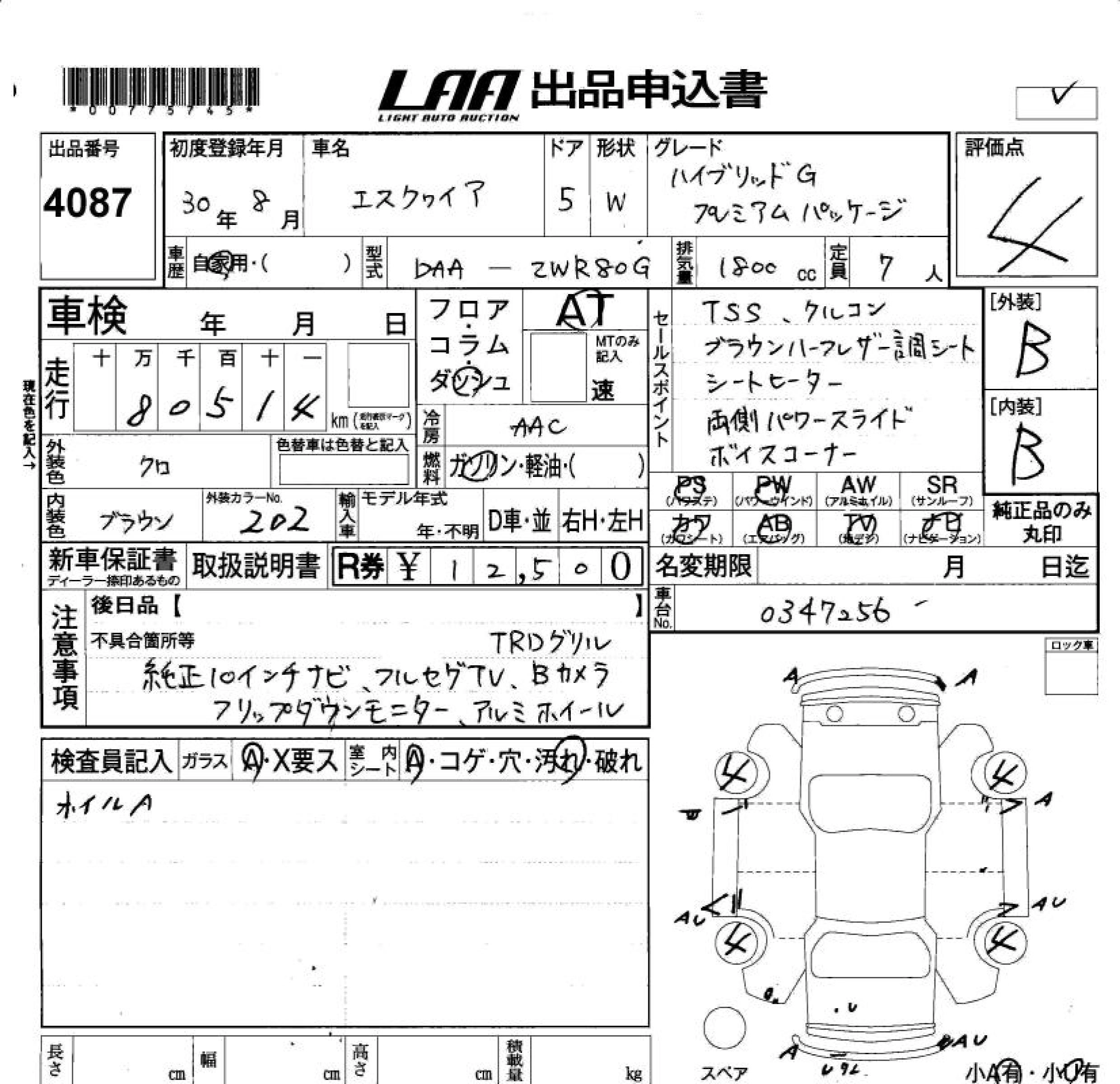 Статус продан Лот 4087 Аукцион LAA Okayama Дата аукциона 23.01.2026