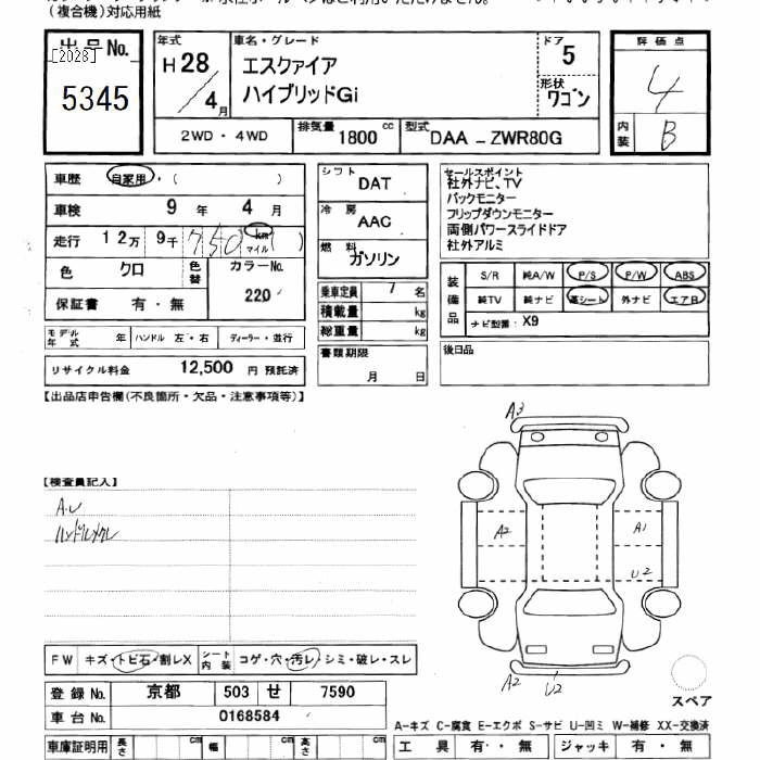 TOYOTA ESQUIRE 2016 г., лот № 5345