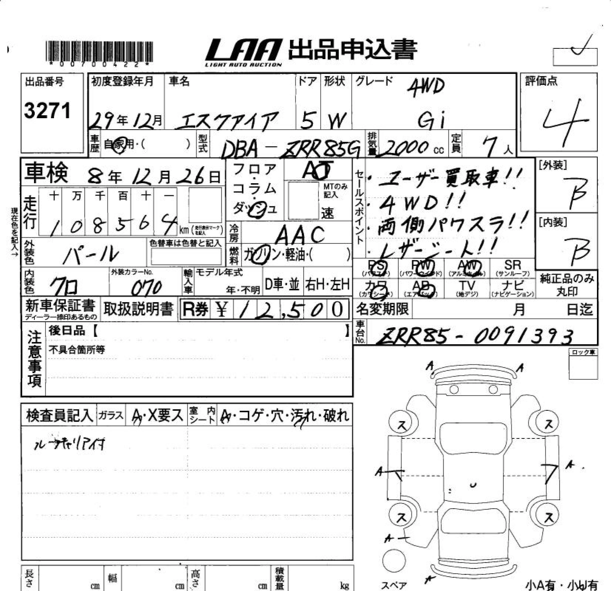 Статус не продан Лот 3271 Аукцион LAA Okayama Дата аукциона 23.01.2026