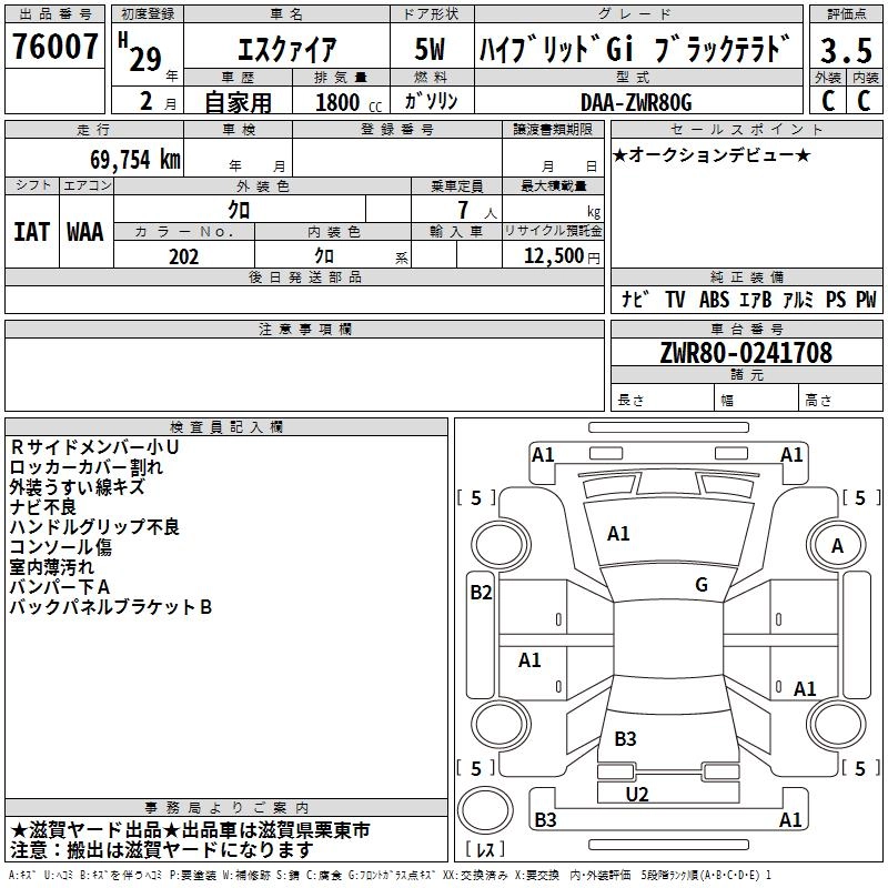 TOYOTA ESQUIRE 2017 г., лот № 76007