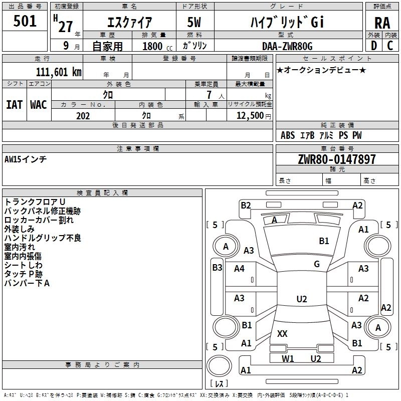 TOYOTA ESQUIRE 2015 г., лот № 501