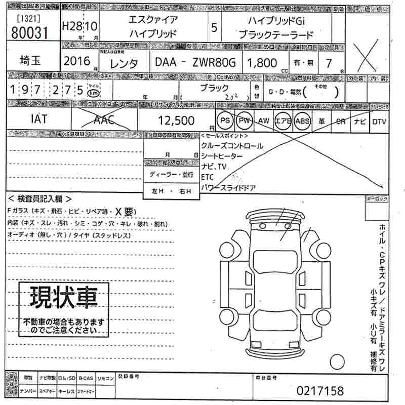 TOYOTA ESQUIRE 2016 г., лот № 80031