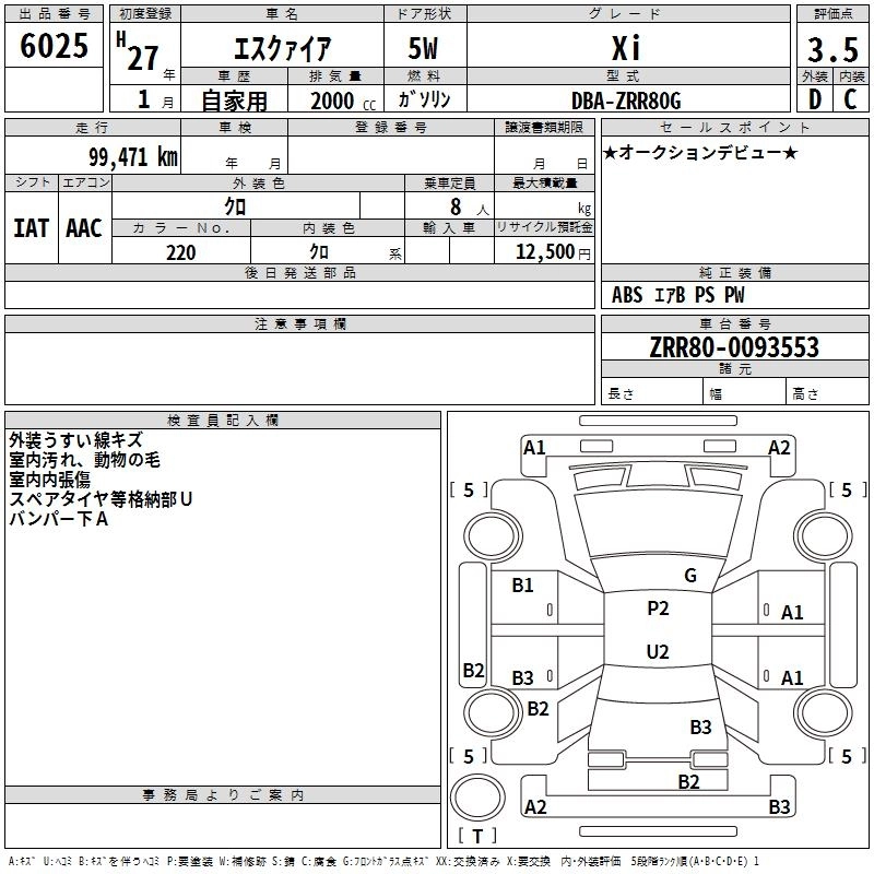 TOYOTA ESQUIRE 2015 г., лот № 6025