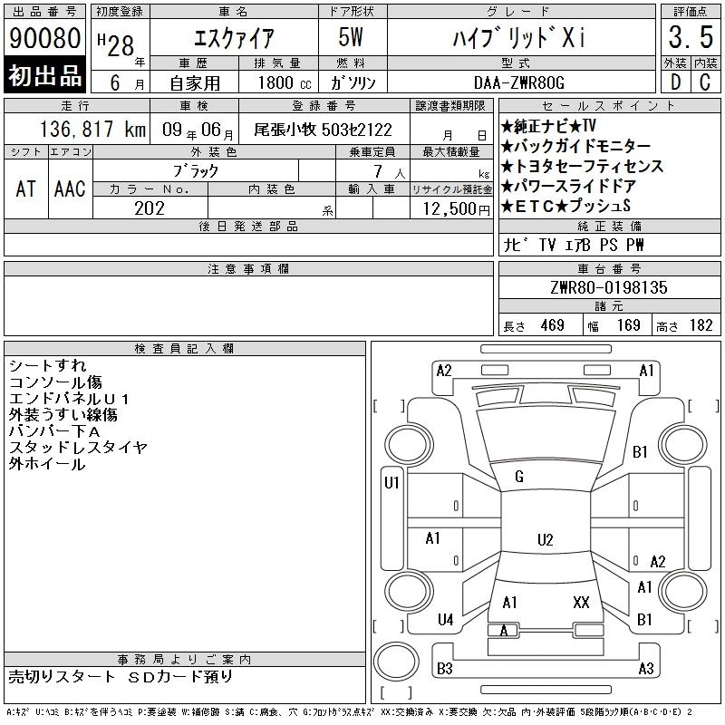 TOYOTA ESQUIRE 2016 г., лот № 90080