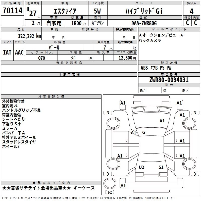 TOYOTA ESQUIRE 2015 г., лот № 70114