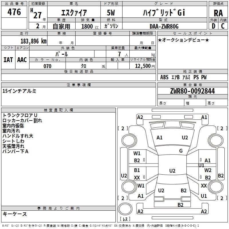 TOYOTA ESQUIRE 2015 г., лот № 476