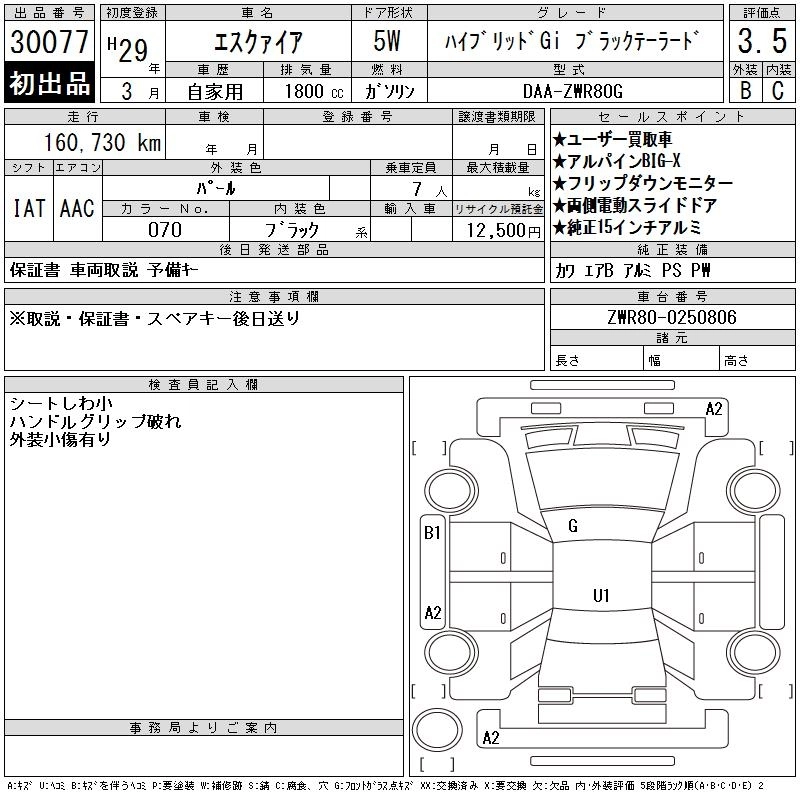 TOYOTA ESQUIRE 2017 г., лот № 30077