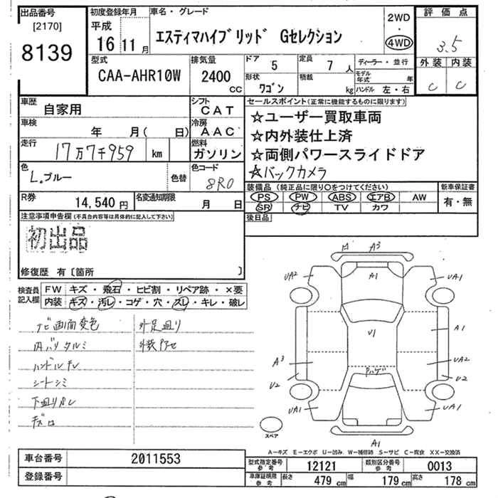 Год выпуска2004 Пробег 178 000 км КузовAHR10W Комплектация4WD G SELECTION