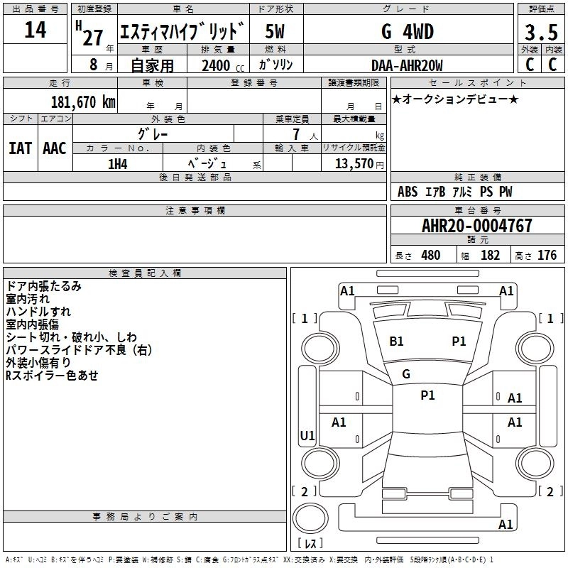TOYOTA ESTIMA HYBRID 2015 г., лот № 14