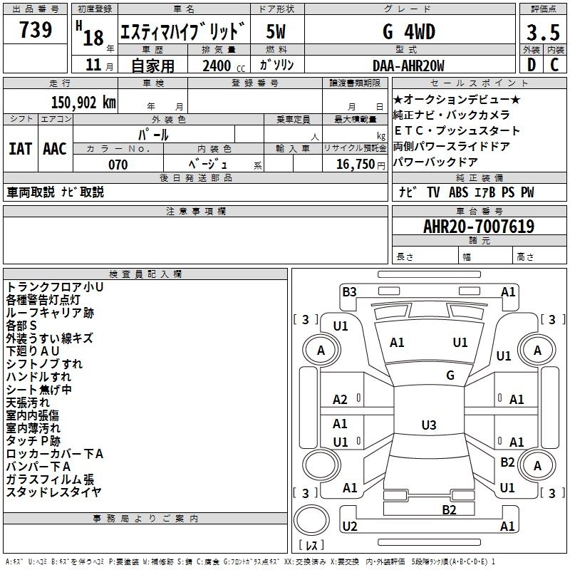 TOYOTA ESTIMA HYBRID 2006 г., лот № 739