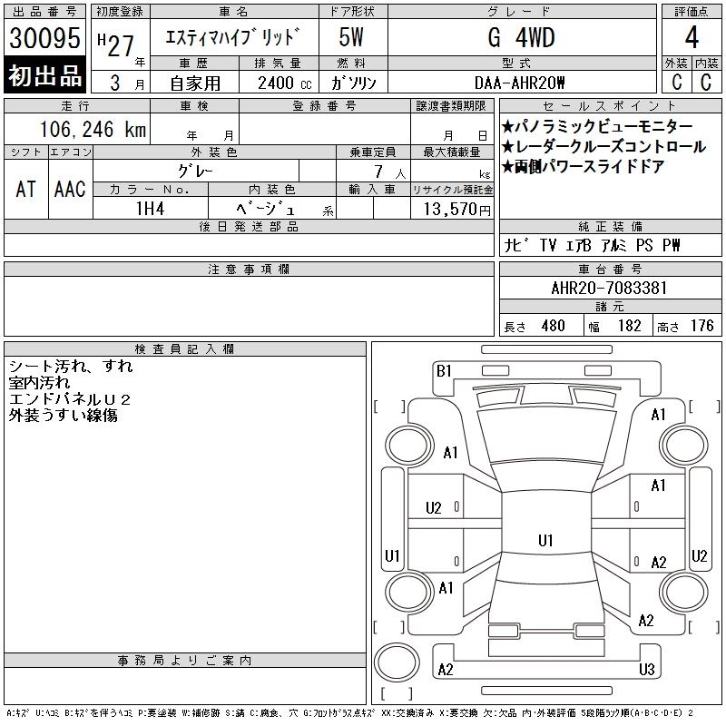TOYOTA ESTIMA HYBRID 2015 г., лот № 30095
