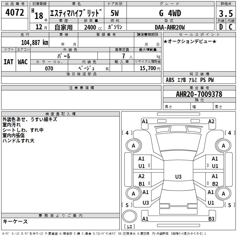 TOYOTA ESTIMA HYBRID 2006 г., лот № 4072