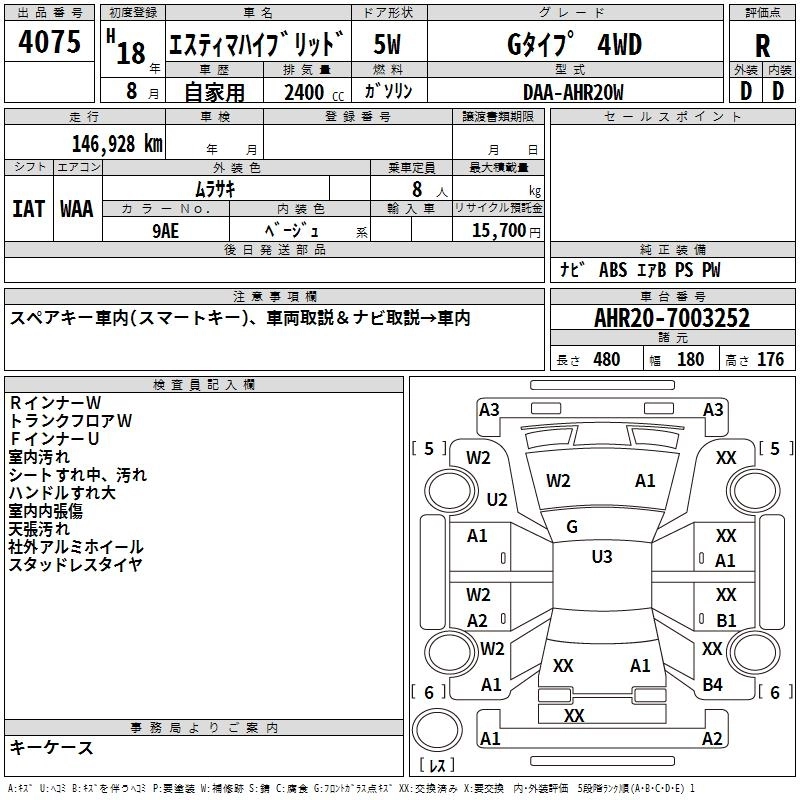Год выпуска2006 Пробег 147 000 км КузовAHR20W КомплектацияG TYPE 4WD
