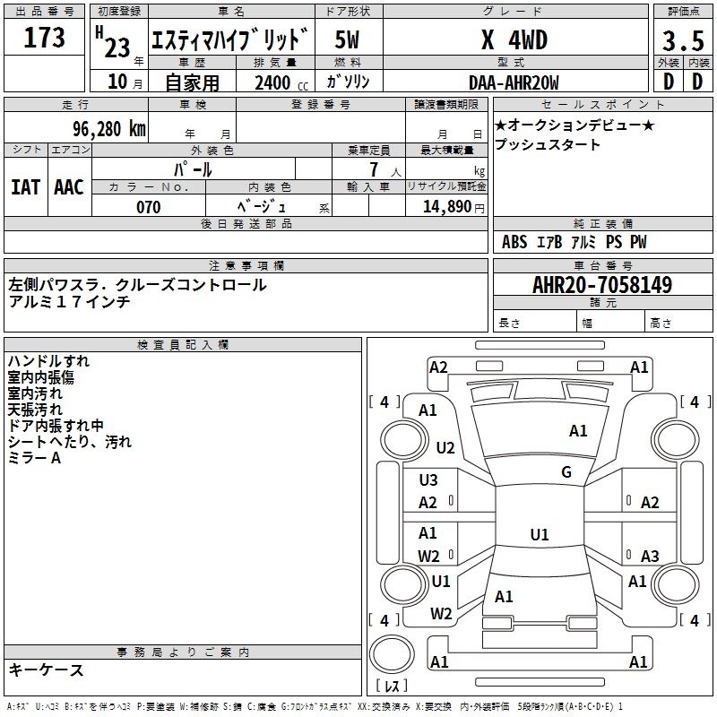 TOYOTA ESTIMA HYBRID 2011 г., лот № 173