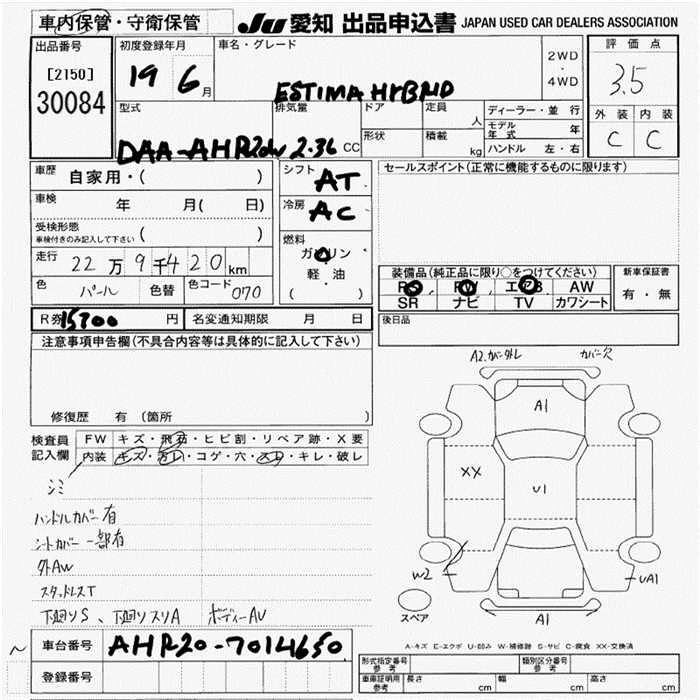 TOYOTA ESTIMA HYBRID 2007 г., лот № 30084