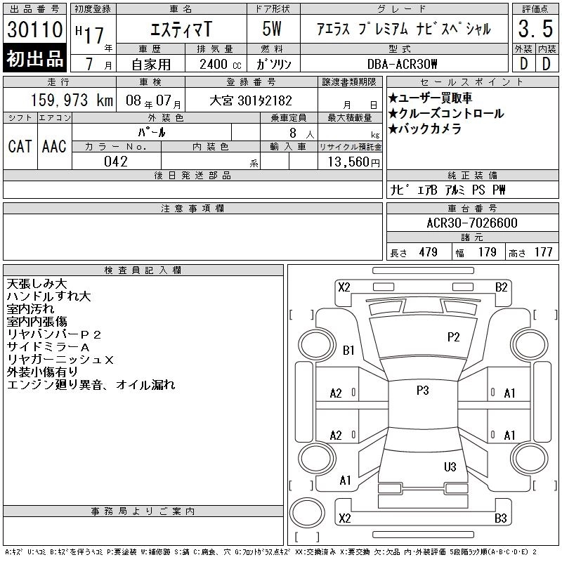 Год выпуска2005 Пробег 160 000 км КузовACR30W Комплектация AERAS PREMIUM NAVIGATION SPECIAL