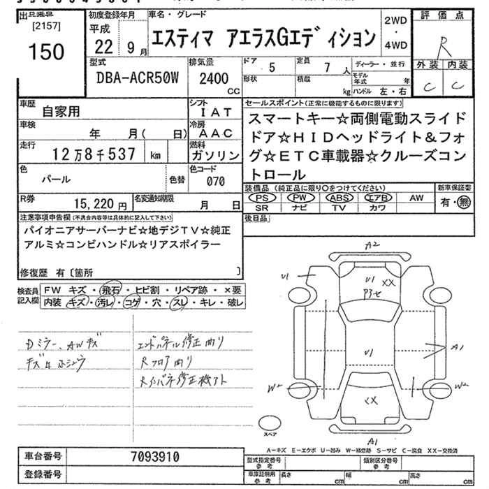 TOYOTA ESTIMA 2010 г., лот № 150