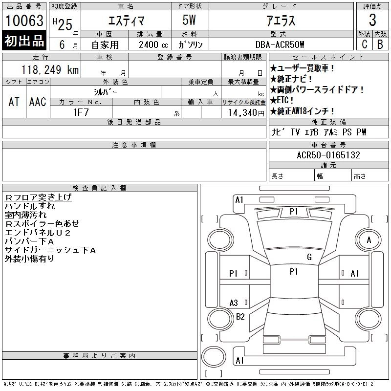 TOYOTA ESTIMA 2013 г., лот № 10063