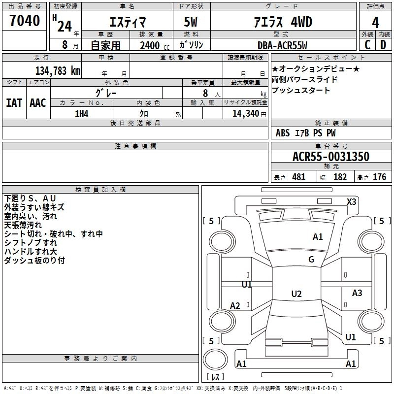 TOYOTA ESTIMA 2012 г., лот № 7040