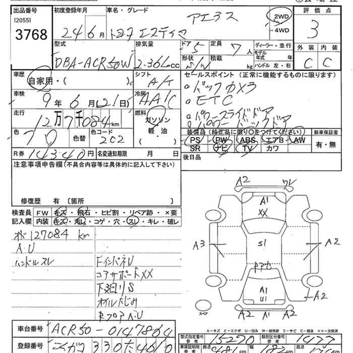 TOYOTA ESTIMA 2012 г., лот № 3768