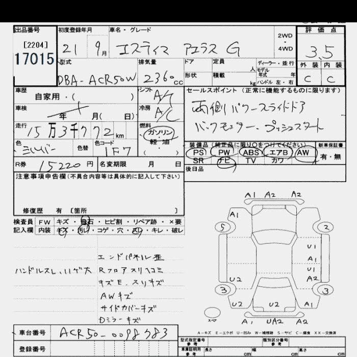 TOYOTA ESTIMA 2009 г., лот № 17015