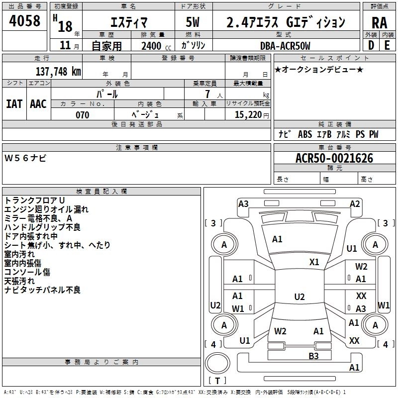 TOYOTA ESTIMA 2006 г., лот № 4058
