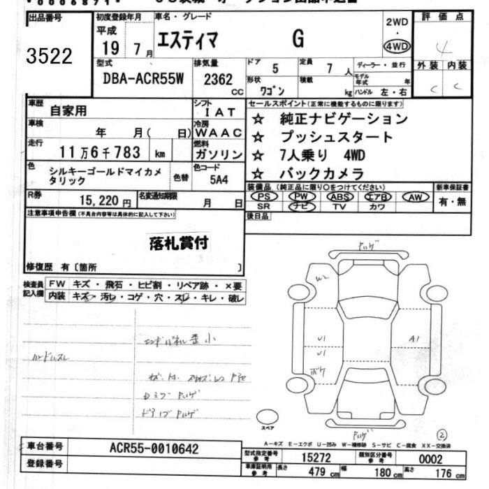 TOYOTA ESTIMA 2007 г., лот № 3522