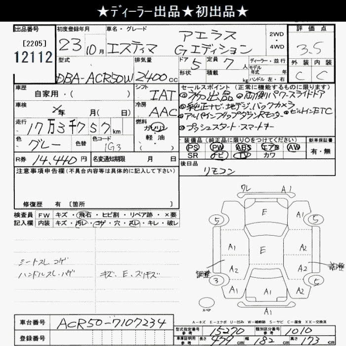 TOYOTA ESTIMA 2011 г., лот № 12112