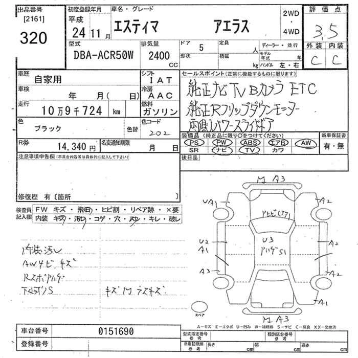 TOYOTA ESTIMA 2012 г., лот № 320