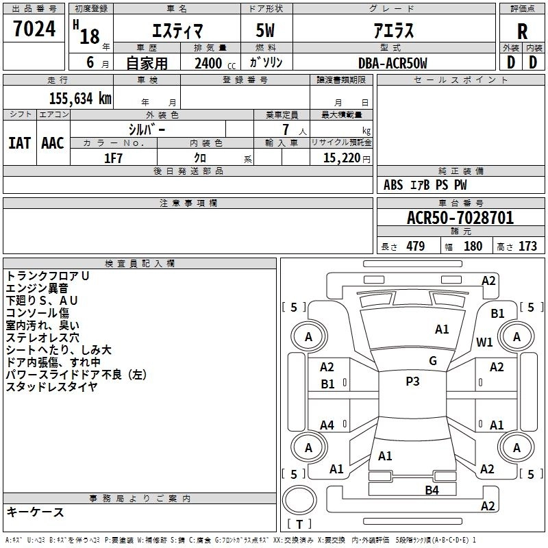 TOYOTA ESTIMA 2006 г., лот № 7024