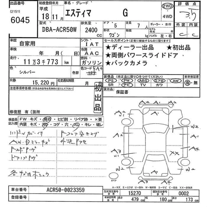 TOYOTA ESTIMA 2006 г., лот № 6045