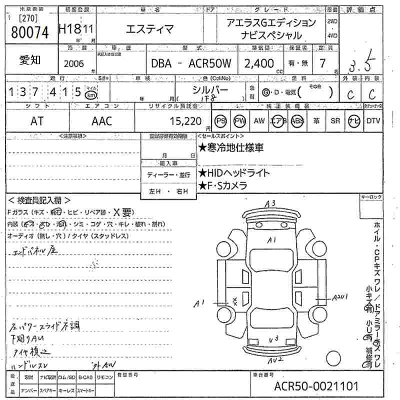 Год выпуска2006 Пробег 137 000 км КузовACR50W Комплектация AERAS G EDITION NAVIGATION SPECIAL