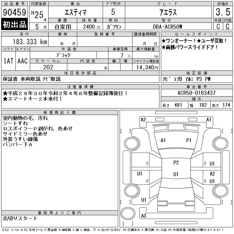 Статус продан Лот 90459 Аукцион CAA Chubu Дата аукциона 10.12.2025