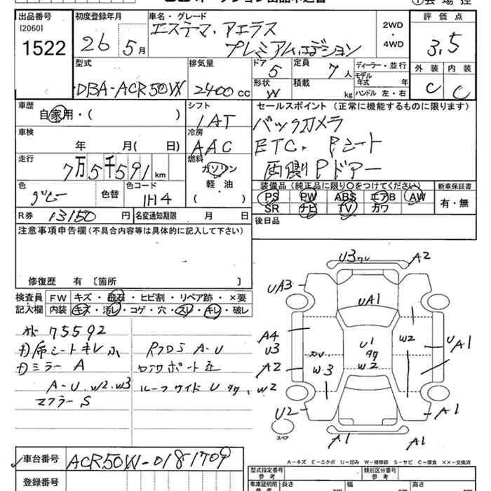 TOYOTA ESTIMA 2014 г., лот № 1522