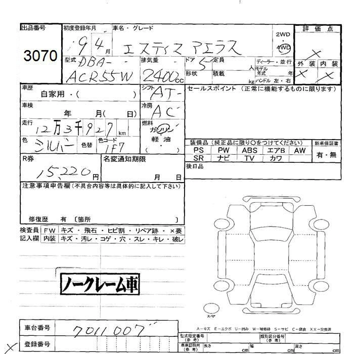 TOYOTA ESTIMA 2007 г., лот № 3070
