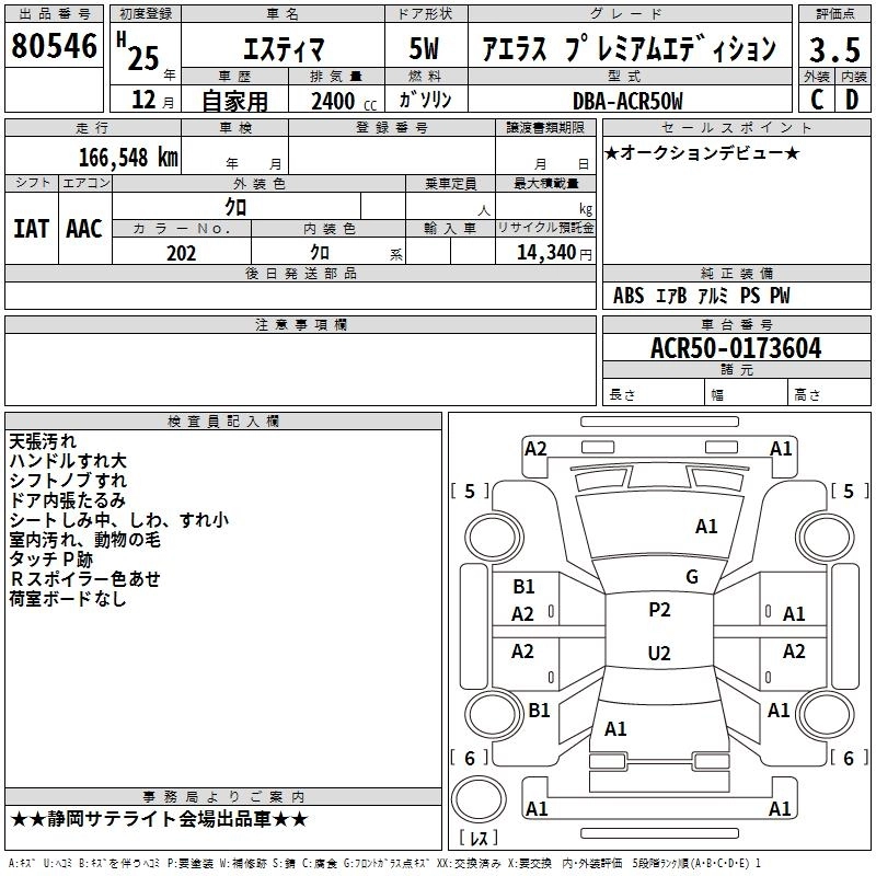 TOYOTA ESTIMA 2013 г., лот № 80546