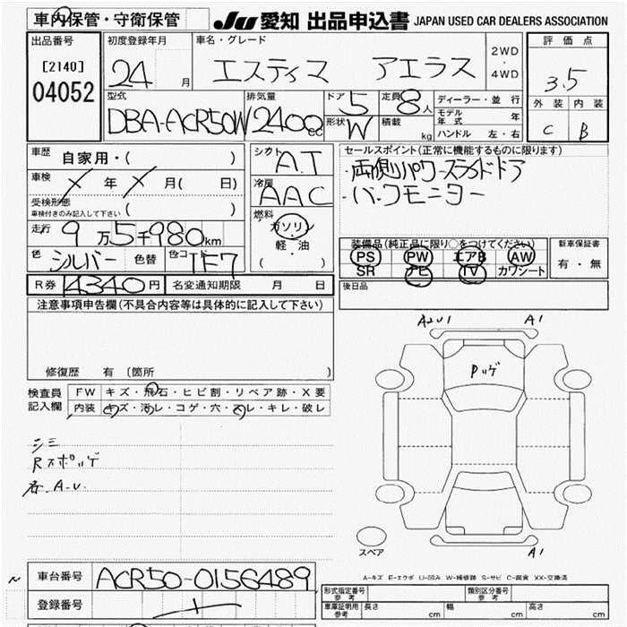 TOYOTA ESTIMA 2012 г., лот № 4052