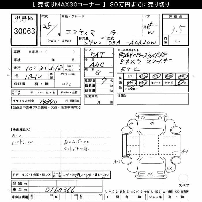 TOYOTA ESTIMA 2013 г., лот № 30063